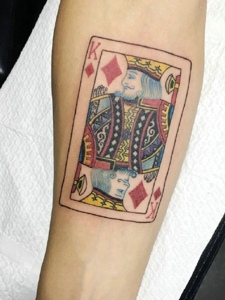 腿部一张个性风趣的扑克牌纹身图案