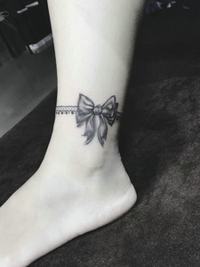 脚腕上的黑灰蝴蝶结纹身图片很优美