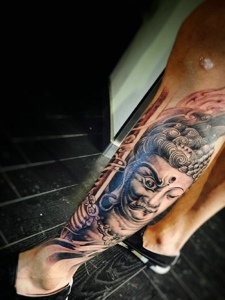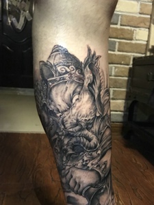 佛与魔相结合的腿部纹身图案