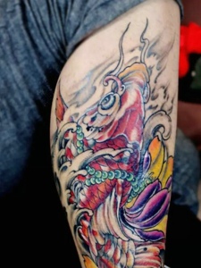 风格改变的腿部七彩鲤鱼纹身图案