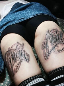 适合情侣与姐妹的腿部英文纹身图案