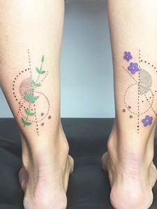 结合图案形成的腿部纹身图案