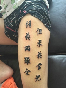 腿部外侧非常清晰的繁体字纹身图案