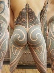 男性屁股腿部传统毛利人纹身图案