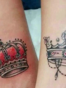 新时代腿部皇冠情侣纹身图案