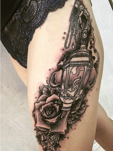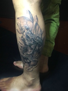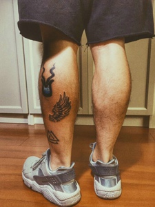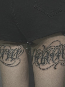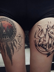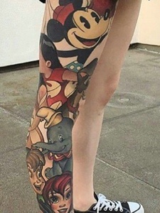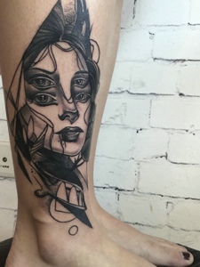 让人眼花缭乱的腿部重叠肖像纹身刺青