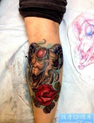 一幅腿部欧美风格羚羊玫瑰花纹身图片有纹身520图库推荐
