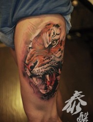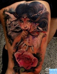 纹身520图库推荐一幅腿部欧美潮流女郎纹身图片