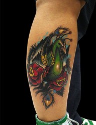 纹身520图库推荐一幅腿部彩色孔雀纹身图片