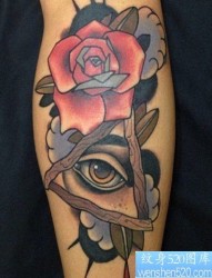纹身520图库推荐一幅玫瑰花上帝之眼纹身图片