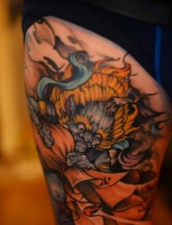 刺青520图库推荐一幅腿部彩色不动冥王刺青图片