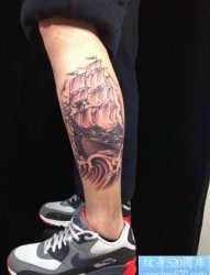 纹身520图库推荐一幅小腿帆船纹身图片