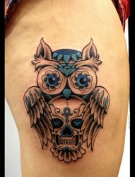 纹身520图库 推荐一幅腿部猫头鹰纹身图案