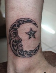 腿部纹身图片:腿部月亮星星纹身图片纹身作品