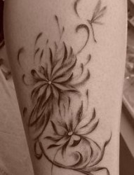 腿部纹身图片:腿部莲花藤蔓蜻蜓纹身图片纹身作品
