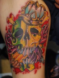 腿部纹身图片:腿部彩色皇冠纹身图片纹身作品