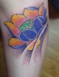 女人纹身图片:美女腿部莲花纹身图片作品(精品)