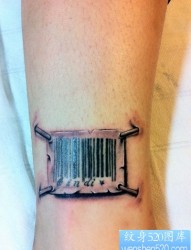 条形码纹身图片:腿部条形码纹身图片纹身作品