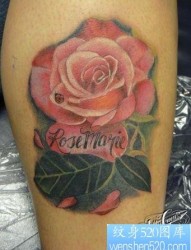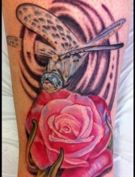 腿部纹身图片:腿部玫瑰蜻蜓纹身图片作品