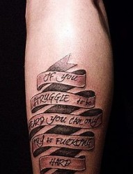 腿部纹身图片:腿部飘带文字纹身图片纹身作品