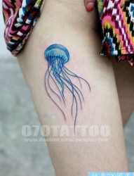 水母纹身图片:腿部彩色水母纹身图片纹身作品