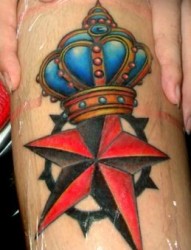 腿部纹身图片:腿部彩色五芒星皇冠纹身图片纹身作品