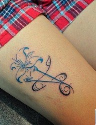 腿部线条百合纹身图片