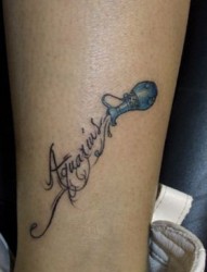 腿部纹身图片:经典潮流腿部水瓶文字纹身图片纹身作品