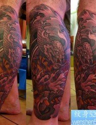 腿部欧美龙纹身图片