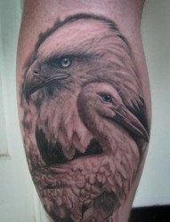 老鹰纹身图片:腿部老鹰天鹅纹身图片纹身作品