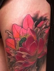 美女腿部彩色莲花纹身图片