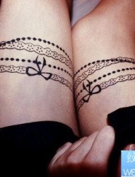 美女腿部蕾丝纹身