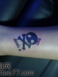美女腿部可爱的图腾骷髅纹身图片