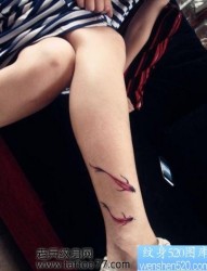 腿部唯美的小锦鲤纹身图片