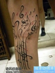 腿部经典的音符纹身图片