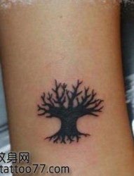 经典的腿部图腾树纹身图片