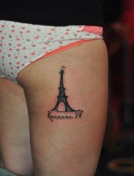 美女腿部巴黎铁塔纹身图片