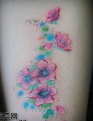 美女腿部好看的彩色樱花纹身图片
