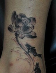 腿部水墨画鲤鱼莲花纹身图片
