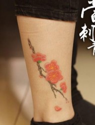 女孩子喜欢的腿部才梅花纹身图片