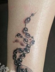 腿部潮流的十字架吊链纹身图片