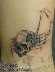 潮流经典的腿部骷髅音符纹身图片