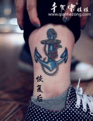 腿部精美潮流的铁锚纹身图片