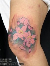 美女腿部好看的樱花纹身图片