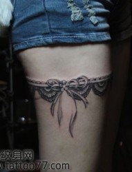 美女腿部潮流性感的蕾丝纹身图片