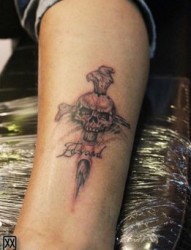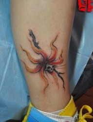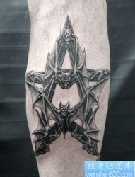 一幅另类的腿部蝙蝠五芒星纹身图片