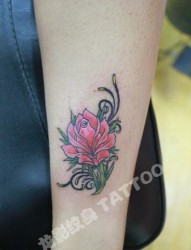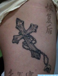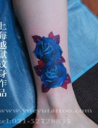 女孩子腿部欧美风格的玫瑰花纹身图片