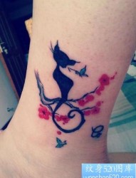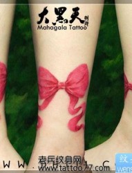 女人腿部好看的钥匙蝴蝶结纹身图片