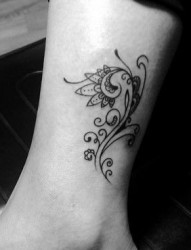 女孩子腿部印度风格图腾藤蔓纹身图片