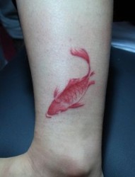 女人喜欢的腿部彩色水墨风格小鲤鱼纹身图片